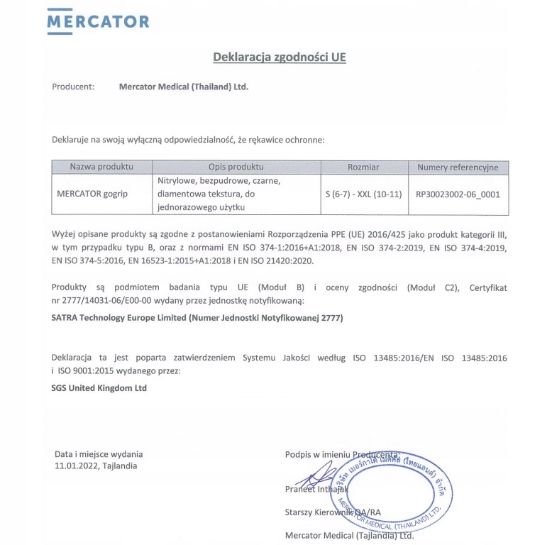 To rękawiczki medyczne, które spełniają wymagania europejskiej dyrektywy o wyrobach medycznych oraz europejskiej dyrektywy o środkach ochrony indywidualnej . Rękawiczki nitrylowe chronią przed zagrożeniami o najwyższym stopniu ryzyka.